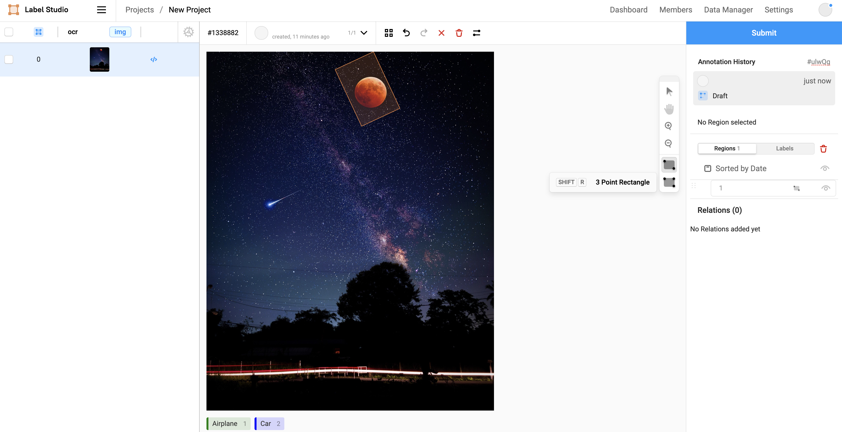 As an annotator, you can create a rotated bounding box with the “three point click” or “two point click” feature to annotate images.